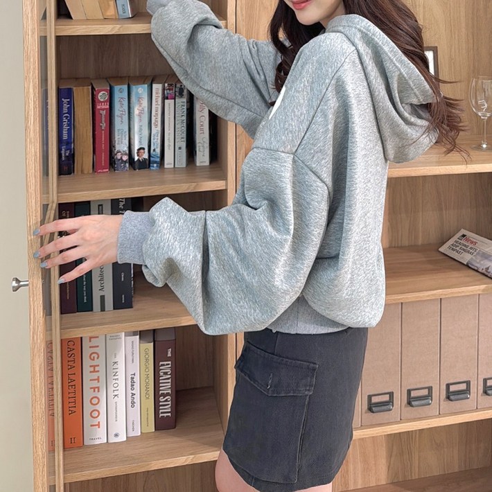 메이징 여성 봄가을 루즈핏 벌룬 소매 후드 프린팅 맨투맨 티셔츠