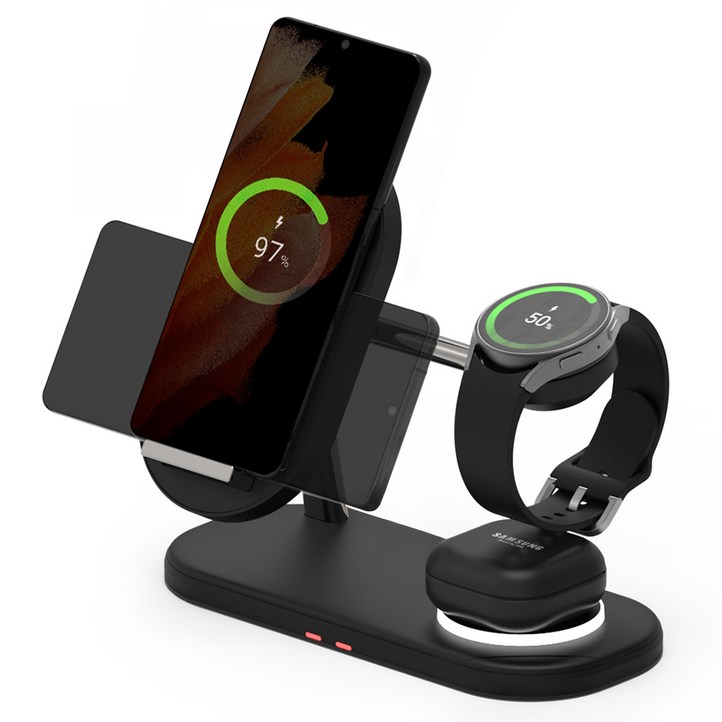 바우아토 맥브리즈 3in1 듀얼 코일 고속 무선충전기 거치대 갤럭시 호환, 미드나잇블랙, 1개, 미드나잇블랙, 1개
