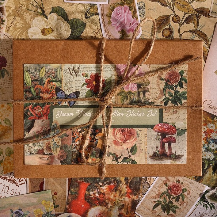 올리브파티 고전시리즈 감성 빈티지 다꾸 스티커 배경지 메모지 100매 박스 세트, 1세트, 드림플라워