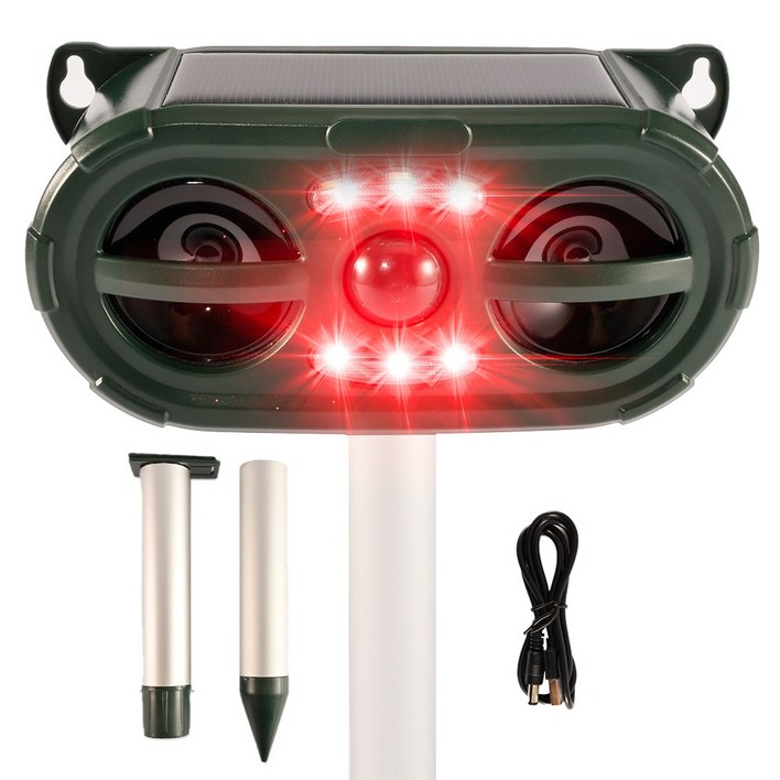 신품 두눈 강력 초음파 태양열 충전 야생동물 퇴치기 LED 경보음 kc인증 멧돼지 고라니 두더지