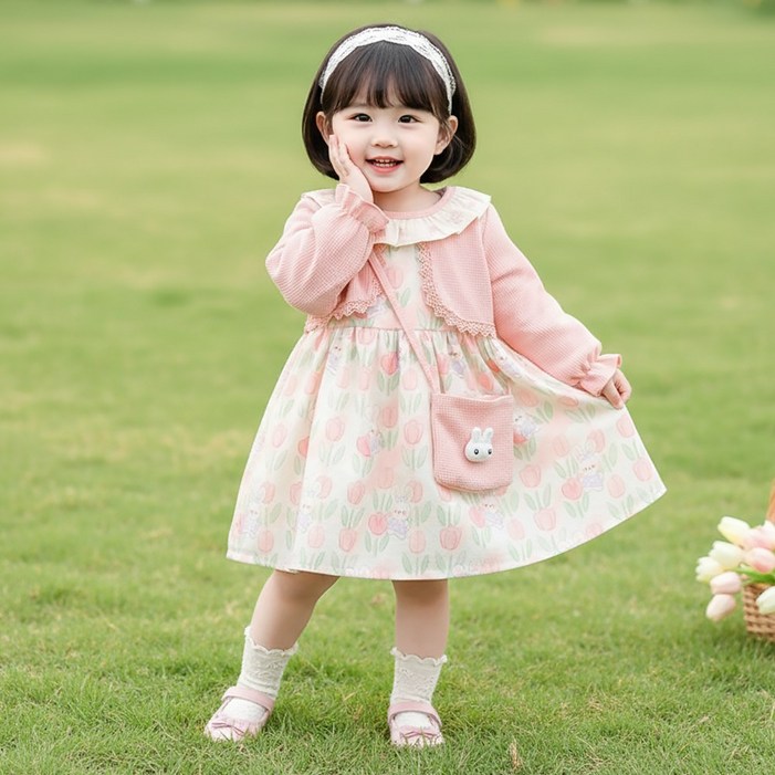 토끼튤립 볼레로 원피스 긴팔 봄 가을 여아 외출복 추석 선물 유아